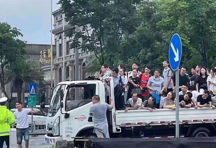 昨天夜里,一场暴雨又加剧了宁波城区部分低洼地的内涝。在地处宁波城西的海曙区集士港镇,镇区道路均有不同程度的积水。在积水最深的广蔺社区幸福里小区,由于积水深达90厘米,居民无法出行。为了解决居民出行问题,广蔺社区借来大卡车,为一早出门上班的社区居民提供大卡车接送服务。(总台记者曹美丽 杜金明 金坚)