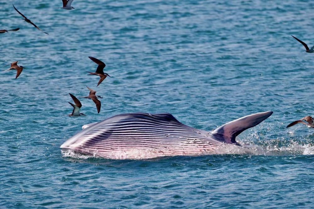 一段时间过去,人们惊喜发现,“小布”依然活跃在大鹏湾。这段时间以来,深圳渔政部门和科研人员已经记录到鲸鱼捕食行为近百次。其体长8米左右,据估算,它每天要吃掉180公斤鱼。