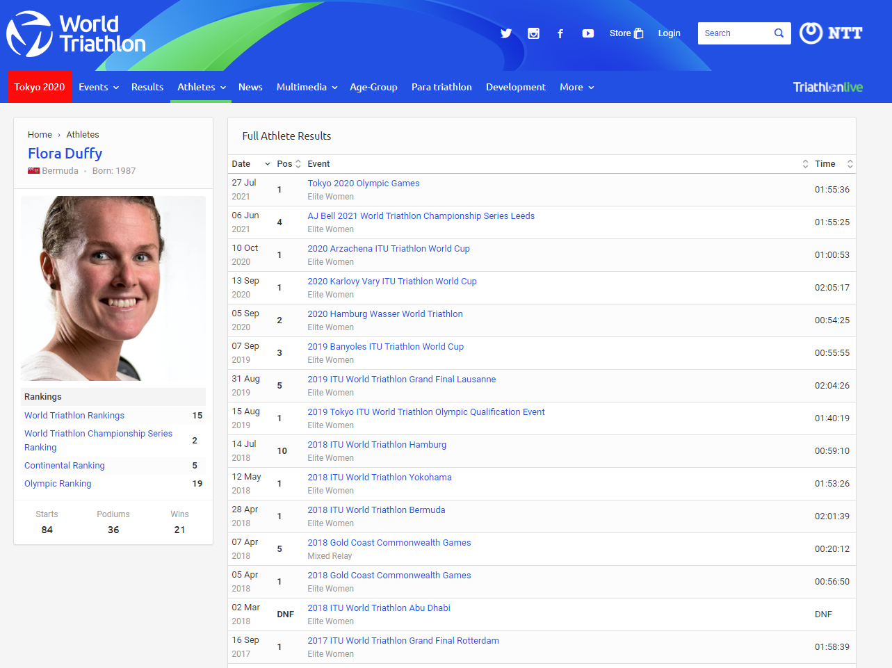 7月27日上午,当弗洛拉·达菲(Flora Duffy) 以1小时55分36秒的成绩夺得女子铁人三项冠军后,仅有约6.3万人口的百慕大第一次跻身奥运会金牌榜。有评论称,达菲的这枚金牌让百慕大成为奥运历史上人口最少的夺金代表团。