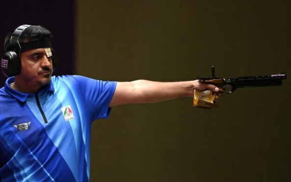 △贾瓦德·福楼吉在男子10米气手枪决赛中 图片来源:法新社