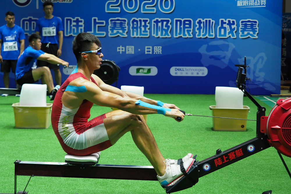 资料图:2020年6月6日,张亮在中国陆上赛艇极限挑战赛中。新华社发(李青 摄)