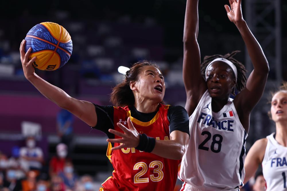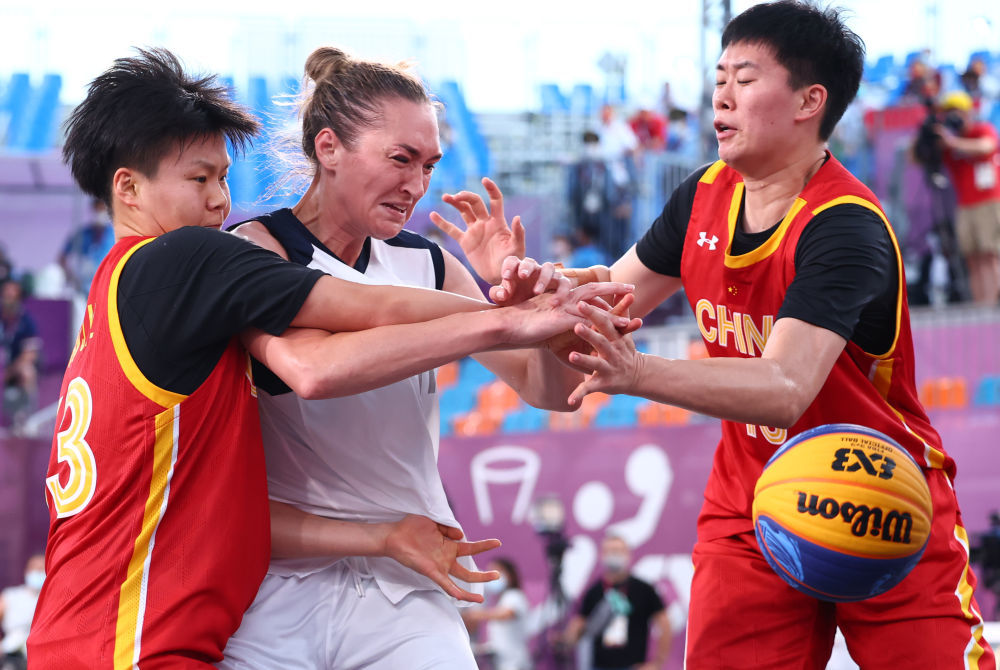 7月28日,中国队球员在东京奥运会女子三人篮球项目铜牌争夺战前。新华社记者 兰红光 摄
