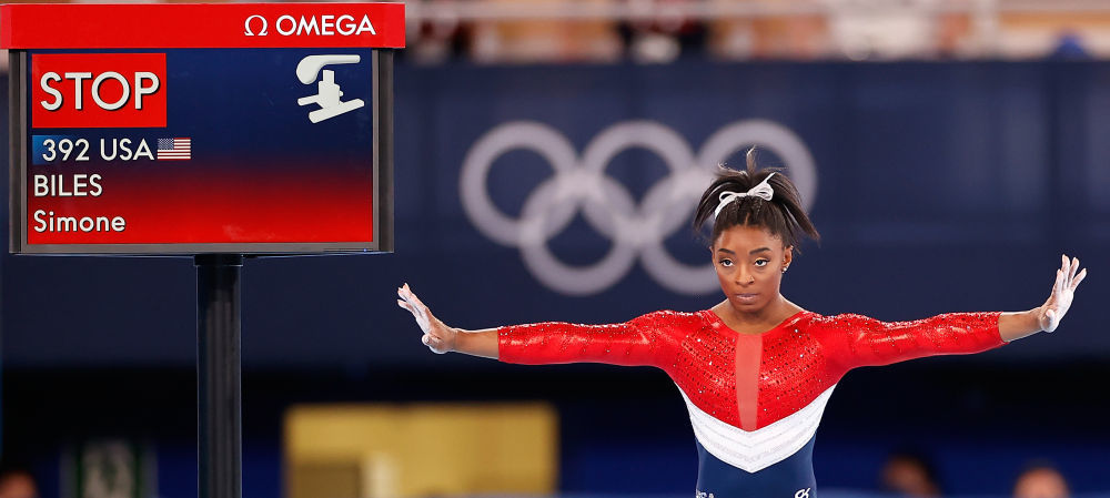 7月27日,美国队选手西蒙·拜尔斯在跳马项目比赛中。新华社记者 王丽莉 摄