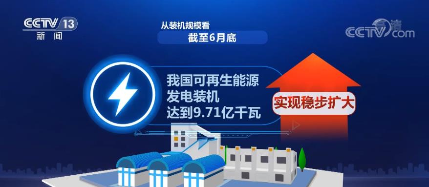 从装机规模看,截至6月底,我国可再生能源发电装机达到9.71亿千瓦,实现稳步扩大。