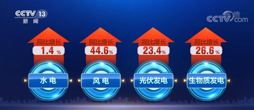 从发电量看,今年上半年,全国可再生能源发电量达1.06万亿千瓦时,持续快速增长。其中,水电、风电、光伏发电和生物质发电同比分别增长1.4%、44.6%、23.4%和26.6%。