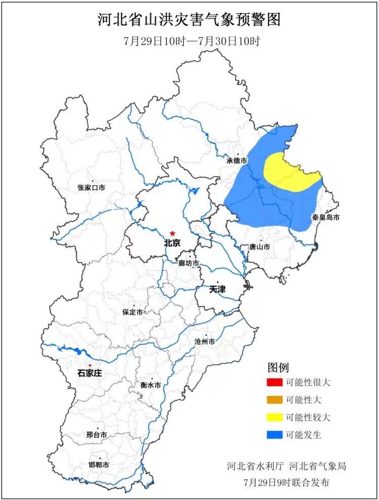 河北省水利厅和河北省气象局今天(29日)9时联合发布山洪灾害气象预警。