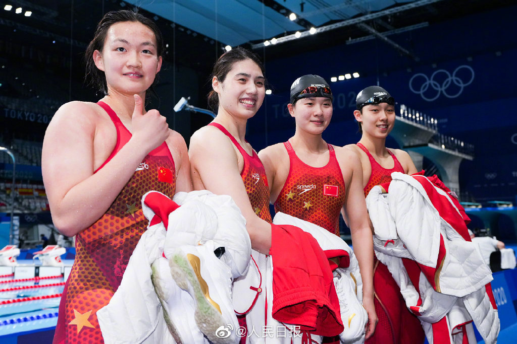 东京奥运会女子4×200米自由泳接力决赛,由杨浚瑄 、汤慕涵、张雨霏 、李冰洁组成的中国队以7分40秒33夺冠,打破世界纪录!网友: 姑娘们太厉害了!