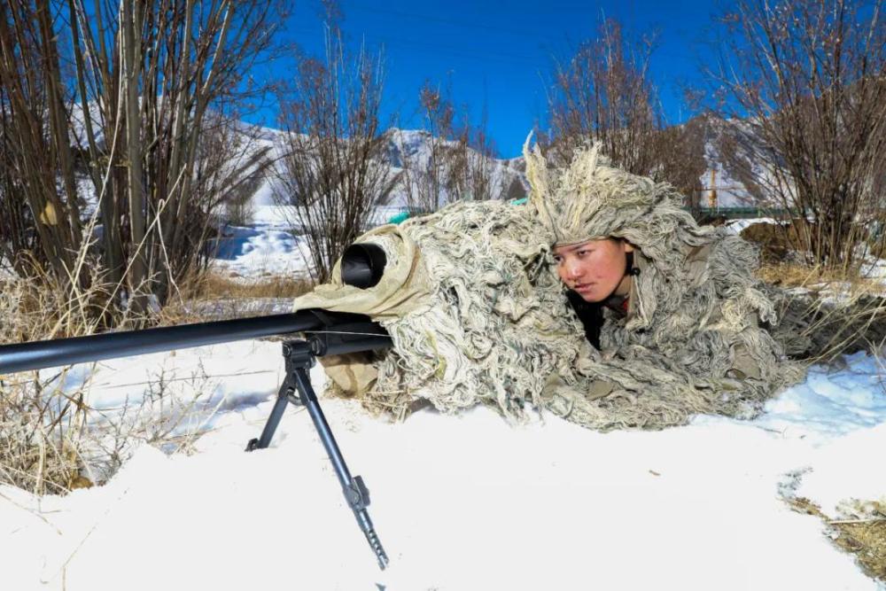 2018年12月,达娃卓嘎正在雪地里据枪瞄准。张文权摄