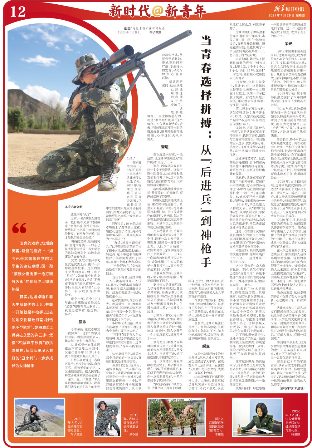 就这样,达娃卓嘎成了战友口中的神枪手。以前打不中的鸡蛋、打不中的乒乓球、打不中的飞盘,她现在都能打中,一枪一个,弹无虚发。达娃卓嘎开始当副班长,当班长,当射击教员……