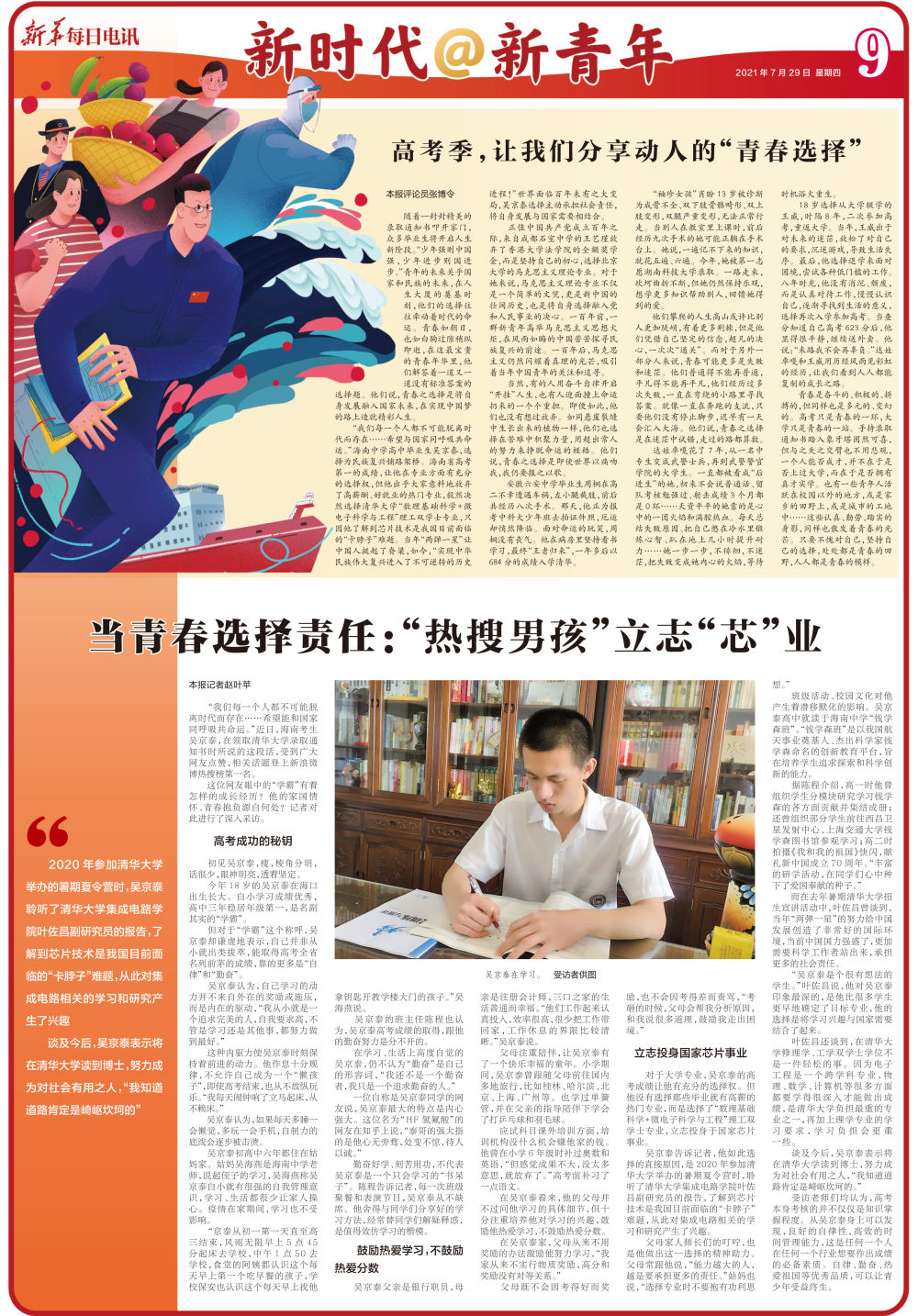 【编者按】随着一封封精美的录取通知书叩开家门,众多毕业生将开启人生新阶段。“少年强则中国强,少年进步则国进步。”青年的未来关乎国家和民族的未来,在人生大厦的奠基时刻,他们的选择往往牵动着时代的命运。7月29日,《新华每日电讯》副刊部与融媒中心联合推出青春特刊,与您一起分享六位年轻人的“青春选择”!