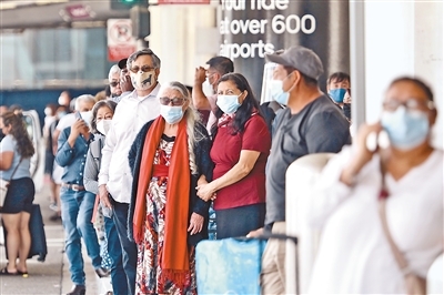 鉴于新冠肺炎感染和住院人数持续增加,美国洛杉矶县近日开始恢复室内公共场所戴口罩的强制规定。图为在美国洛杉矶国际机场佩戴口罩的旅客人群。 新华社发