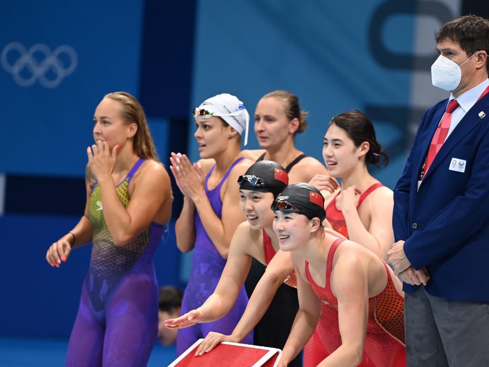 担任最后一棒的李冰洁被队友们看作是“定海神针”,已经收获本届奥运会的400米自由泳铜牌。她确实稳得住,顶住了美国队最后一棒莱德茨基的反扑,游出了个人最好成绩。冠军!世界纪录!这是中国游泳首次赢得这个项目的奥运会冠军。