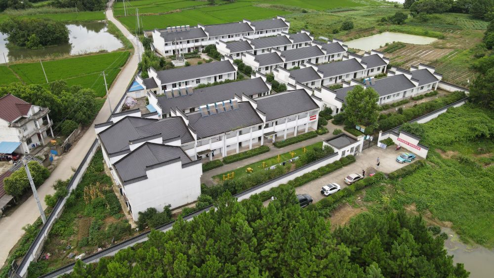这是7月28日拍摄的位于郎溪县建平镇敬老院的临时安置点(无人机照片)。