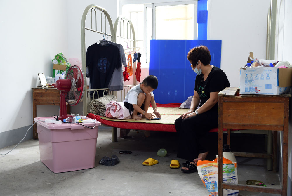 7月29日,转移群众在位于郎溪县建平镇老金桥中学的临时安置点内休息。