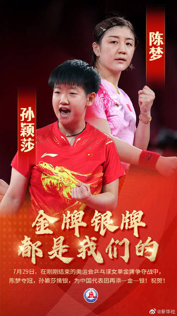 【王者之战,#陈梦夺金孙颖莎摘银#】在刚刚结束的奥运会乒乓球女单金牌争夺战中,陈梦和孙颖莎顶峰相遇,奉献了一场世界顶级水平的乒乓球比赛视觉盛宴!祝贺陈梦和孙颖莎!祝贺国兵摘得奥运首金!#中国第15金#!网友纷纷表示:可以放心看的金牌战真好看!#中国队加油#