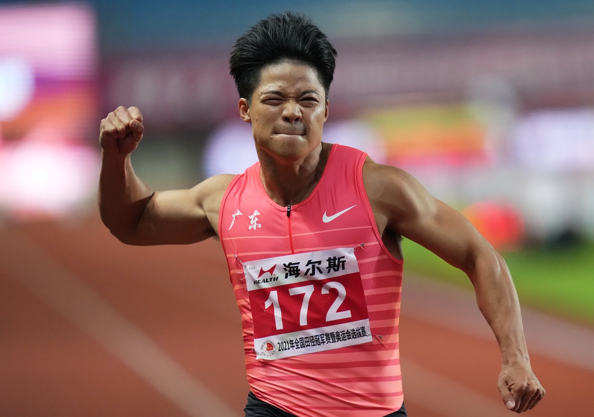 6月11日,苏炳添在2021年全国田径冠军赛暨奥运会选拔赛男子100米决赛中以9秒98的成绩夺得冠军。新华社记者 李一博 摄