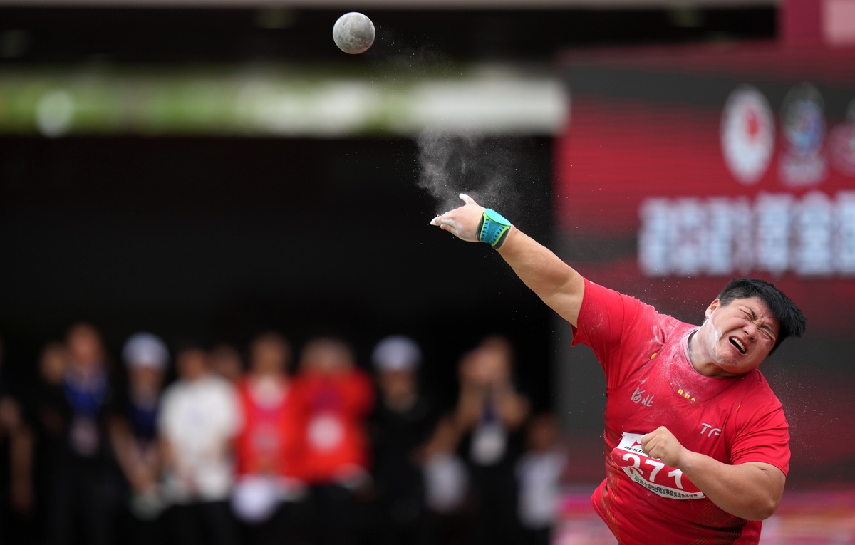 6月13日,巩立姣在2021年全国田径冠军赛暨奥运会选拔赛女子铅球决赛中。新华社记者 李一博 摄