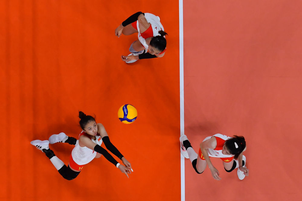 中国队似乎回到了正常的轨道上。大比分2:1反超之后,中国队的球员们在场上比第一局更加自信和放松。第四局用扣球帮助中国队将比分改写为10:7之后,朱婷摔坐在地板上。她顺势用双手拍打着地板,释放着自己的情绪。