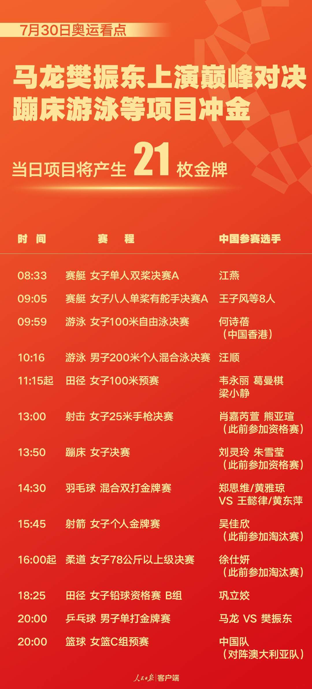 奥运看点:马龙樊振东上演巅峰对决 田径大项开启