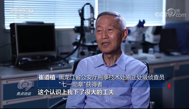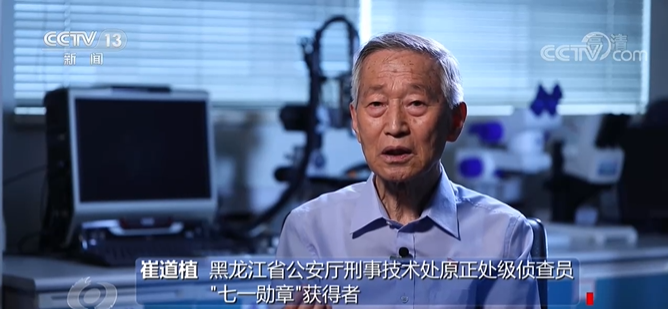 崔道植是公安部首批特邀刑侦专家,被誉为中国刑侦领域国宝级痕迹检验专家,今年已经87岁高龄。作为新中国的第一代刑事技术警察,60多年来,检验鉴定7000余件痕迹物证,参与办理1200余起重特大案件疑难痕迹检验鉴定,无一差错。一起起惊天大案的破获背后,都有他默默付出的身影。直到今天,他精湛的痕迹鉴定技术,仍在诸多重大疑难刑事案件侦破过程中发挥重要作用。6月29日,崔道植获颁党内最高荣誉奖章“七一勋章”。