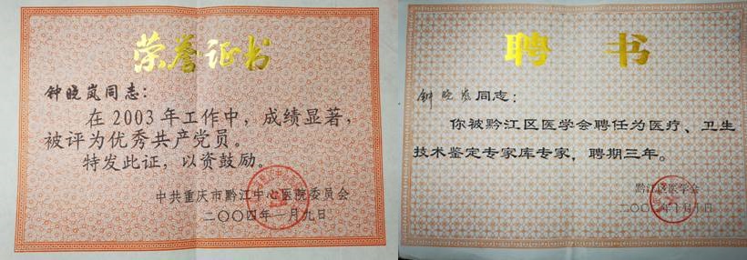1994年,钟晓岚终于凭借自己的努力当上了黔江县人民医院的外科主任。这个只有初中学历的医生,让不少同行刮目相看。1996年,他追寻父亲的足迹,光荣地加入中国共产党。