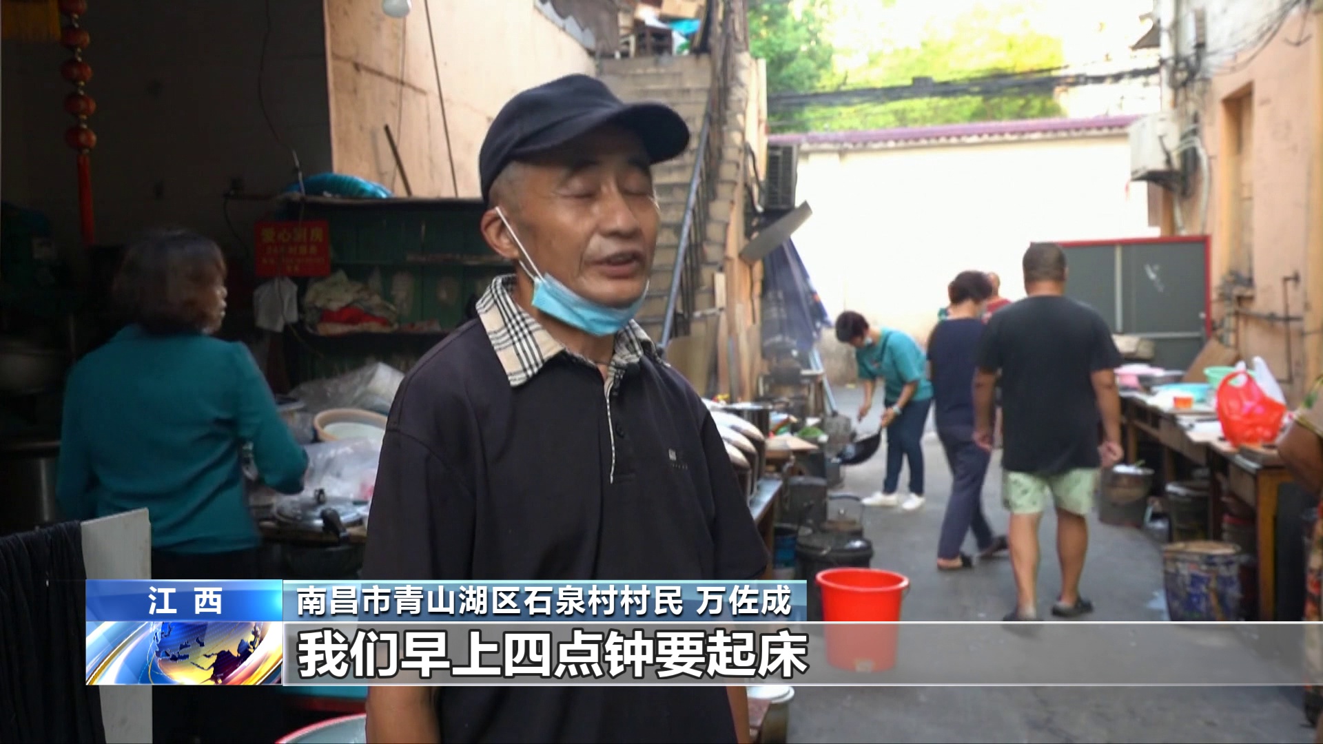 江西省南昌市青山湖区石泉村村民 万佐成:我们早上四点钟要起床,开炉子生火,赶早人家煮面煮稀饭,到晚上要干到九点钟了。我明天早上接着又四点钟起来,就这样像个钟一样,不停地走,不能停的。