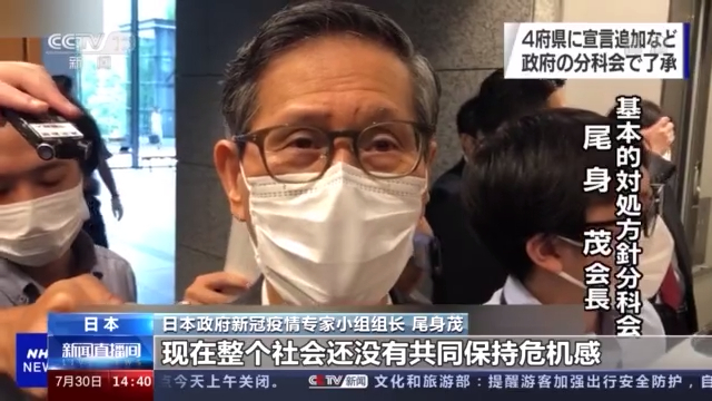 日本政府新冠疫情专家小组组长 尾身茂:现在整个社会还没有共同保持危机感。所谓危机感就是认清现在疫情到底是什么情况,医疗系统方面紧迫到何种程度后,全社会共同发出一个声音,这非常重要。