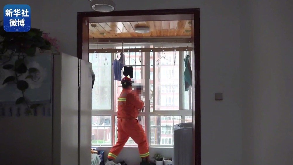 【#3岁男童被卡7楼防盗网身体悬空#消防迅速施救】目前正值暑期,儿童安全问题不可忽视。7月28日,陕西延安洛川县,一名3岁男童被卡在7楼防盗窗,身体完全悬空。事发时家长有事外出,孩子独自在家,房门也被反锁,当地消防人员迅速赶到后成功施救。(记者孙正好) 新华社的微博视频