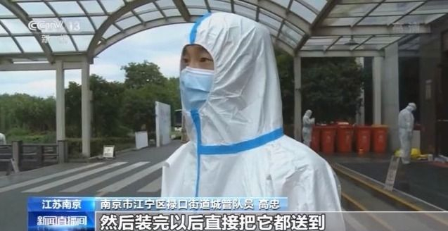 南京市江宁区禄口街道城管队员 高忠:装车完以后,我们把自己身上穿的防护服再消杀一遍,然后再换上一身新的防护服、口罩、防护面罩。装完以后,直接把它都送到禄口医院的一个定点堆放的地方。