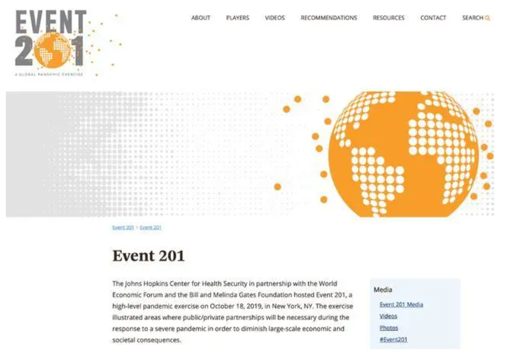 以上描述,是2019年10月,美国进行的一场代号为“事件201”的高级别全球流行病演习中的场景。