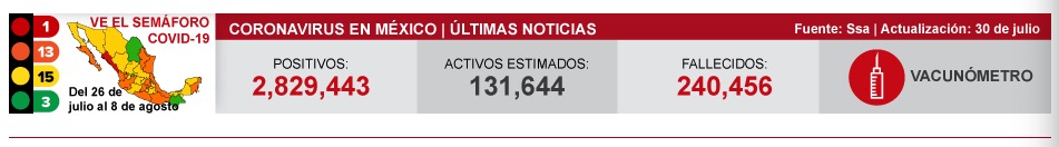 当地时间7月30日,墨西哥卫生部宣布,截止到7月30日晚7时,墨西哥新增新冠肺炎确诊病例19346例,累计确诊2829443例;新增死亡病例459例,累计死亡240456例。(总台记者 盛嘉迪 吕兴林)