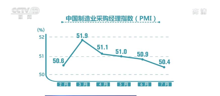 7月份中国制造业采购经理指数(PMI)为50.4%,较上月下降0.5个百分点,但仍保持在50%以上,连续17个月保持在扩张区间。