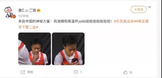 随着风油精火上热搜的还有“保温杯”。在比赛中,侯志慧用保温杯瓶盖喝水,这一细节也引发了网友们的关注。因为其他运动员喝的一般都是瓶装水。