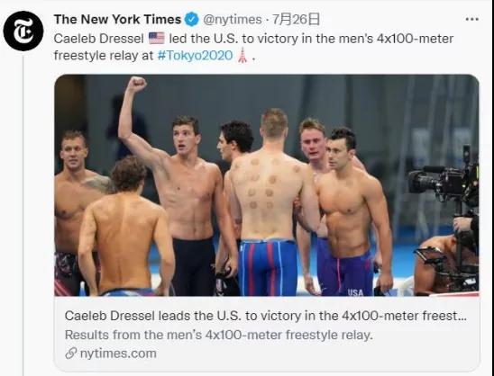 7月26日,东京奥运会游泳比赛进入第二个决赛日,当日压轴战是男子4×100米自由泳接力,在泳姿被称作“教科书”的德雷塞尔带领下,美国队以3分08秒97无悬念夺冠。