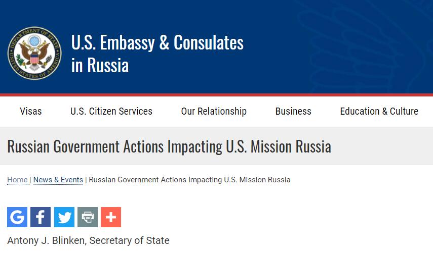 美国驻俄罗斯大使馆官网截图