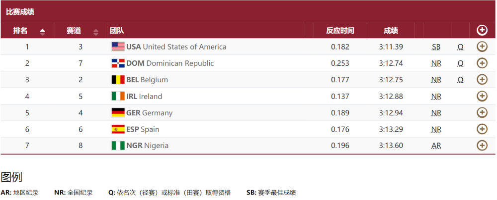 东京奥运官网4×400米男女混合接力预赛比赛成绩
