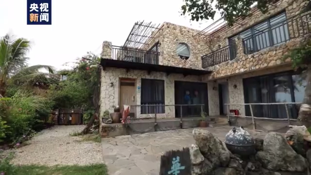 总台记者 罗平章:在南极村,一路走过来,发现两边都是非常别致的民宿小院子,它们很多是用以前渔民的老房子改建而成的,仍然保留了当年的特色,比如墙体上砌的就是当年建造老房子使用的白色珊瑚石,而且民宿里的桌椅板凳也是由废弃的老船木改造而成。