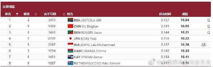 当地时间7月31日晚,在东京奥运会田径男子100米预赛中,中国选手苏炳添跑出10秒05,在所在小组排名第二,成功晋级半决赛。