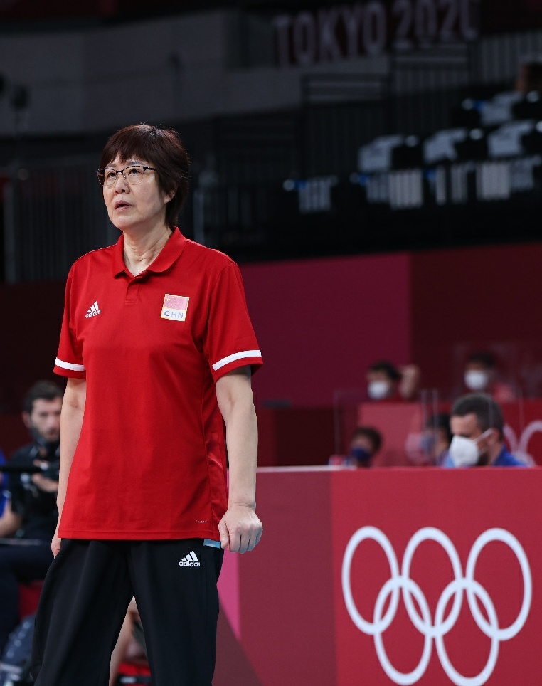 7月31日,中国队主教练郎平在场边观战。当日,在东京奥运会女子排球小组赛中,中国队以3比0战胜意大利队。新华社发