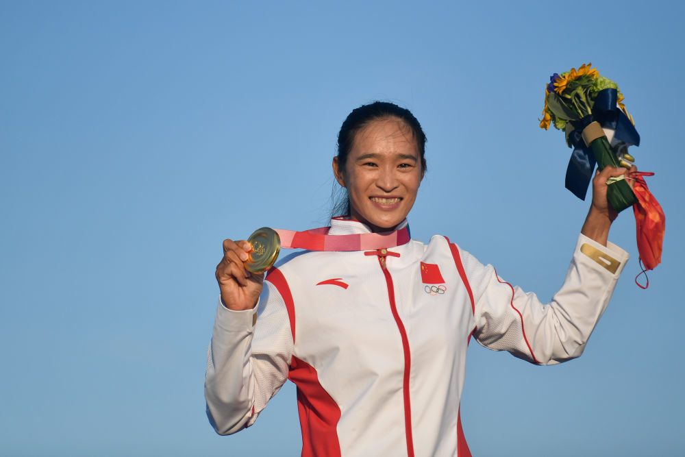 7月31日,在东京奥运会女子帆板RS:X级比赛中,中国选手卢云秀获得冠军。新华社记者黄宗治摄