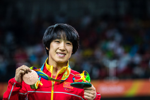 资料图:2016年8月17日,在2016年里约奥运会女子自由式摔跤48公斤级铜牌争夺战中,中国选手孙亚楠获得铜牌。新华社记者刘彬摄