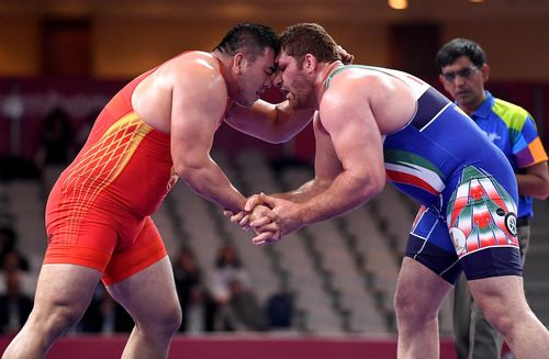 资料图:2018年8月20日,在雅加达举行的第18届亚运会男子自由式摔跤125公斤级决赛中,中国选手邓志伟获得亚军。新华社记者岳月伟摄