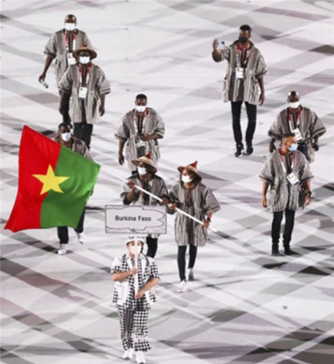 △东京奥运会开幕式上赞戈(左)为布基纳法索旗手