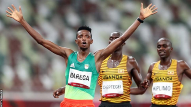 7月30日,在东京奥运会田径赛场上男子10000米比赛中,来自埃塞俄比亚的“00后”小将巴雷加在最后冲刺中加速冲出,最终以27分43秒22的成绩夺冠,为埃塞俄比亚赢得本届奥运会的第一枚金牌。该项目世界纪录保持者、乌干达选手切普特盖以0.41秒的微弱劣势告负,获得银牌。乌干达选手基普利莫获得铜牌。来自非洲国家的长跑运动员们包揽了该项目所有奖牌。