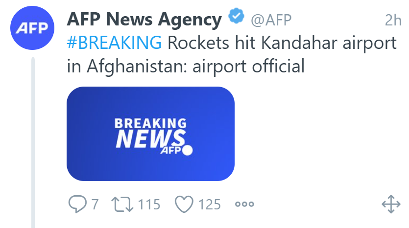 据法新社、路透社报道,当地时间8月1日,阿富汗塔利班发言人称,至少使用三枚火箭弹袭击了阿富汗南部的坎大哈机场,并称此举是为阻止阿富汗政府军实施空袭。目前暂无人员伤亡报告。