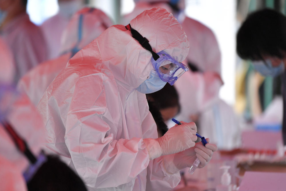 7月29日,在张家界市永定区崇实南校核酸检测点,医务人员正在标记核酸检测取样标本。新华社发(向韬摄)