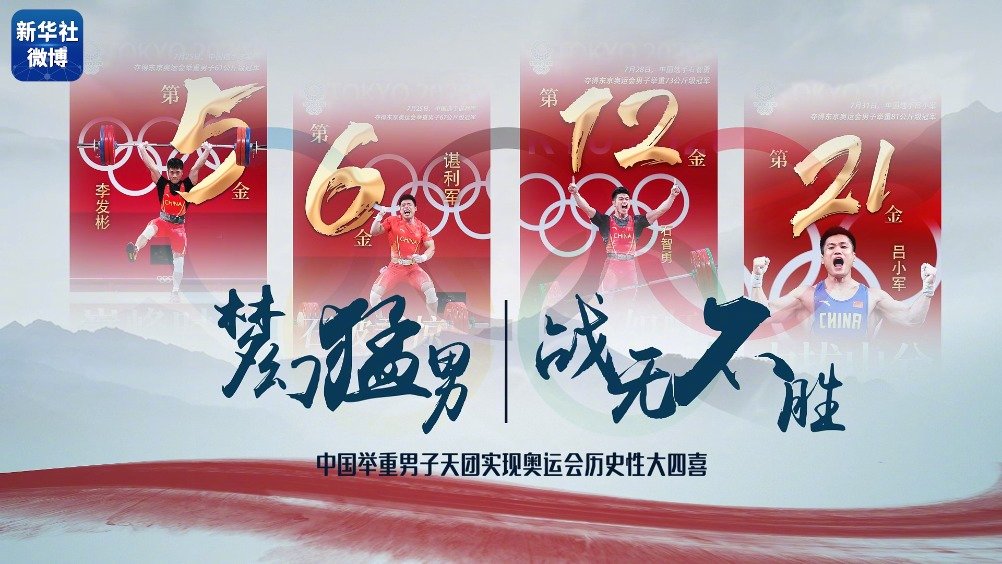 【“大力神之队”群像来了】截至7月31日,中国选手吕小军获得东京奥运会男子举重81公斤级金牌,这意味着,在本届奥运会上四人出战,#中国男子举重获得全部金牌#。夺金率100%!#吕小军是夺冠年龄最大的举重奥运冠军#,网友称中国举重队为“大力神之队”,转发为他们喝彩! 新华社的微博视频