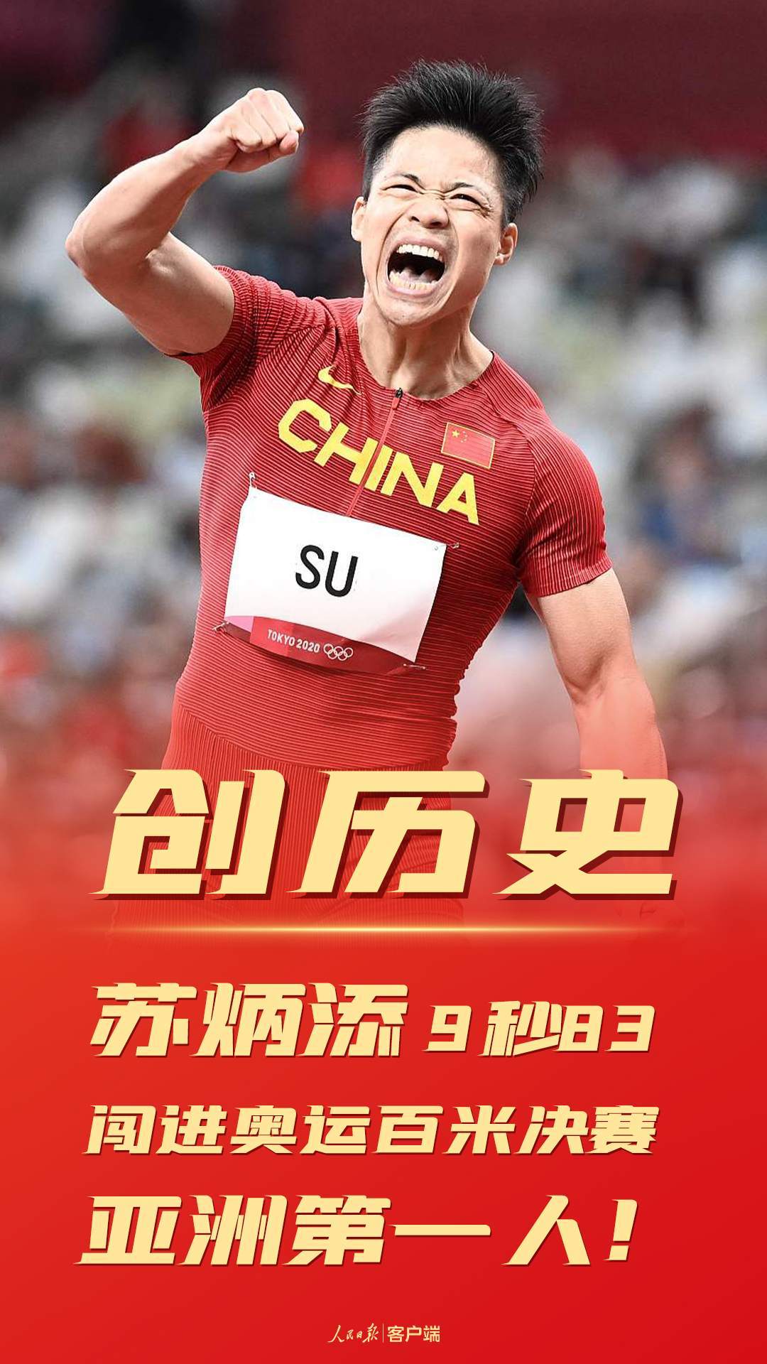 不是夺得奖牌才值得庆贺,超越自我就能赢得尊崇。从第一次跑进10秒,到跑进奥运决赛,苏炳添一次次逆天改命,跑赢了时间。这是中国骄傲,也是亚洲荣耀。奔跑是一种状态,更是一种风采。致敬中国速度,致敬每位创造历史的英雄!