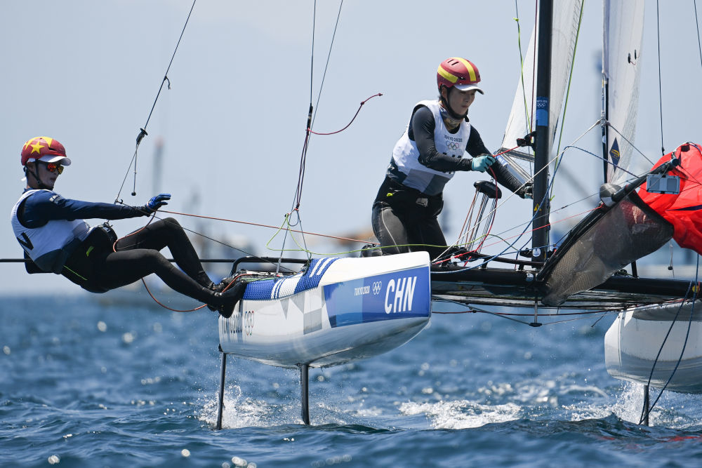 2日帆船赛场上将决出女子49人FX级和男子49人级的奖牌。