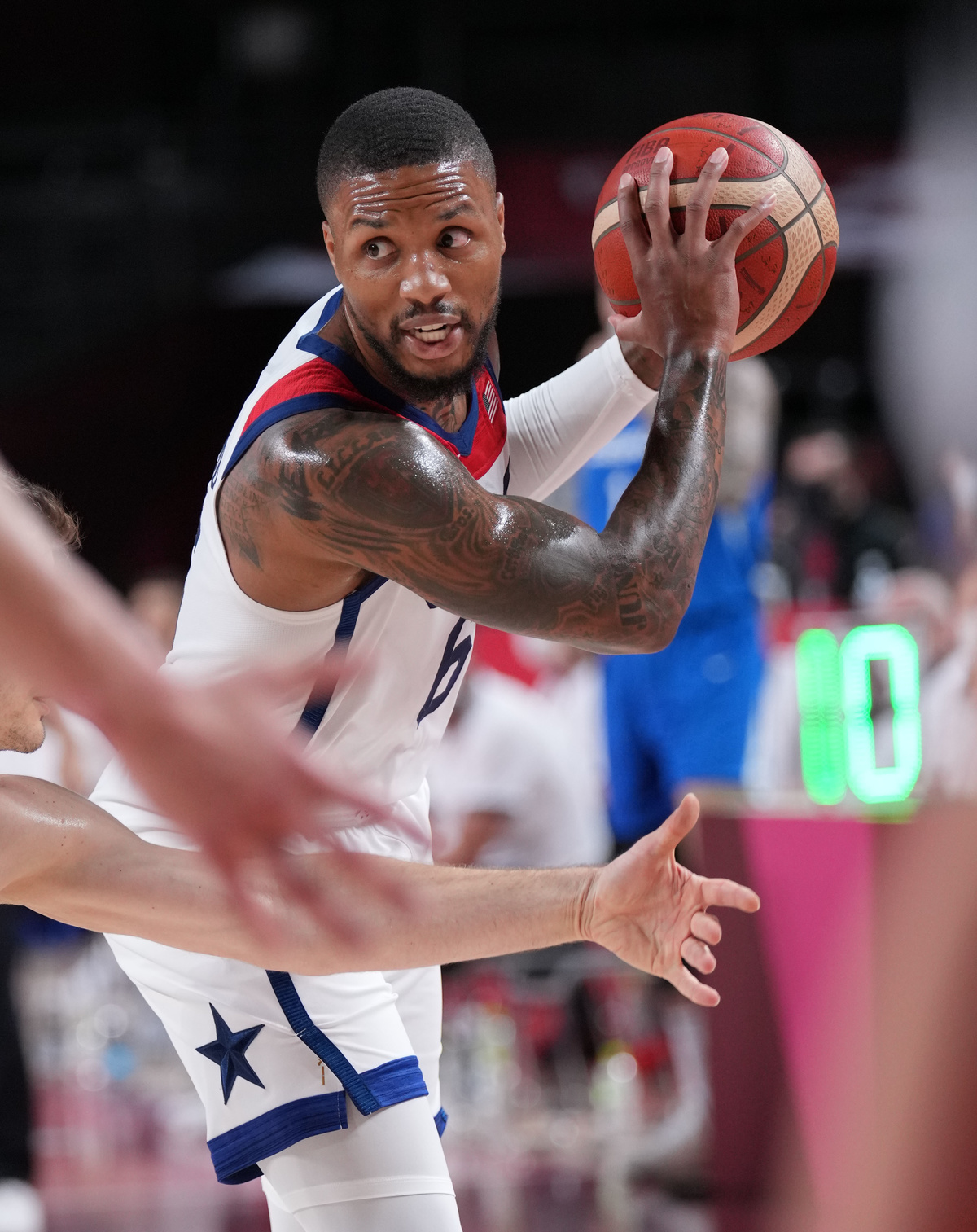 7月31日,美国队球员利拉德在比赛中进攻。新华社记者孟永民摄